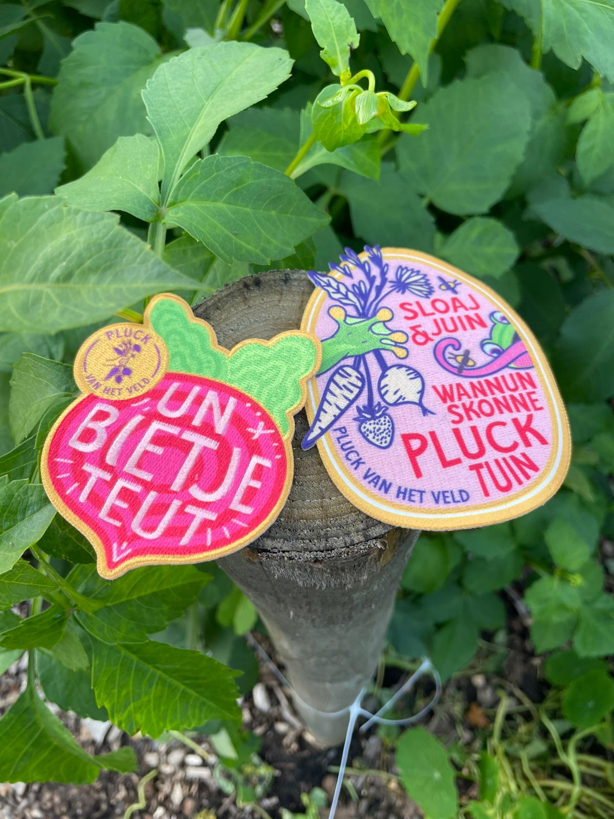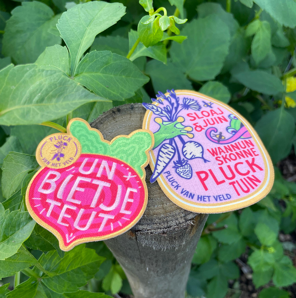 Personaliseer je boerenkiel met één van de twee skonne emblemen, of kies ze allebei!
