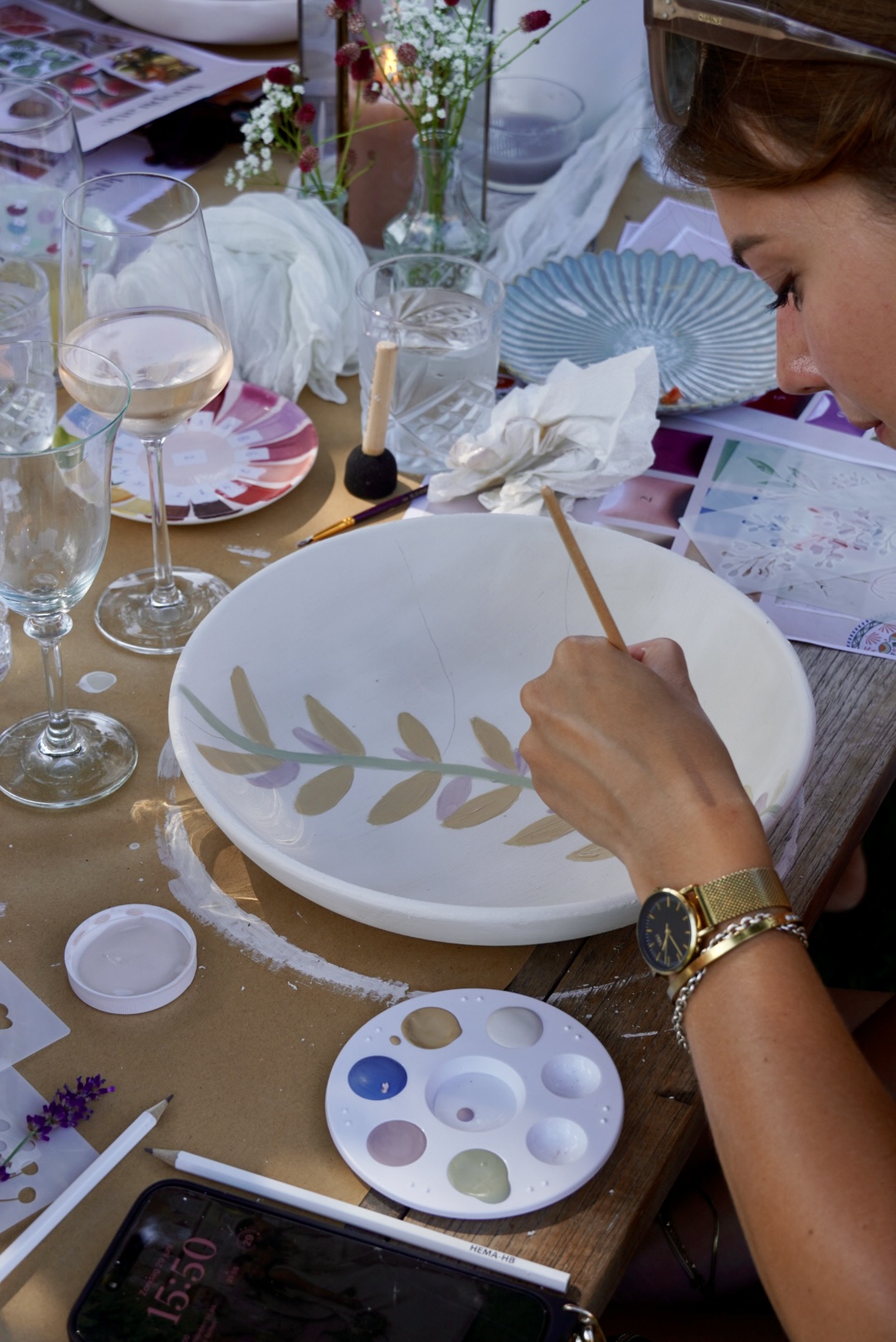 - Je kunt vooraf kiezen of je een vaas of saladeschaal wil beschilderen. Je gekozen product zal voor je klaarstaan tijdens de workshop.