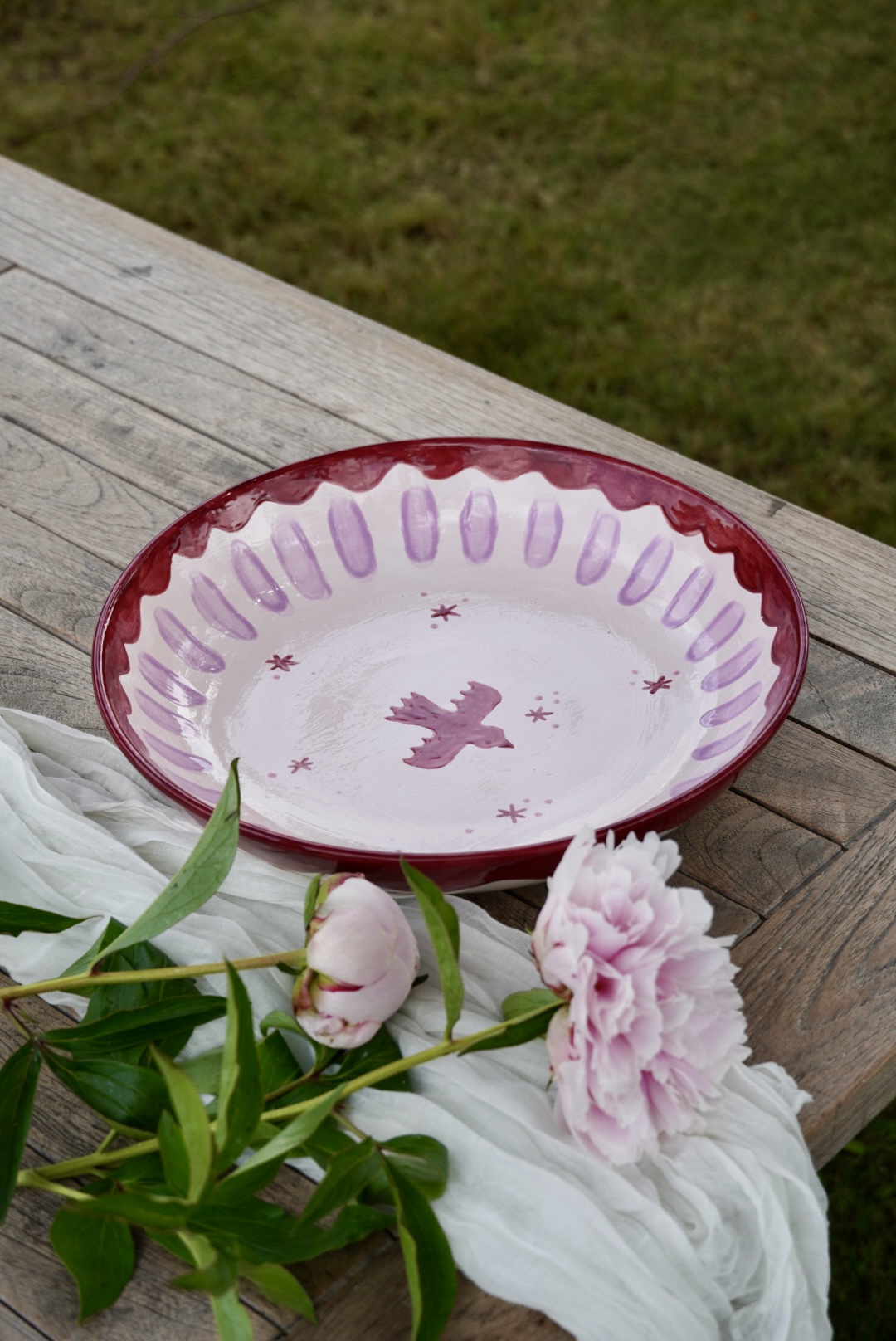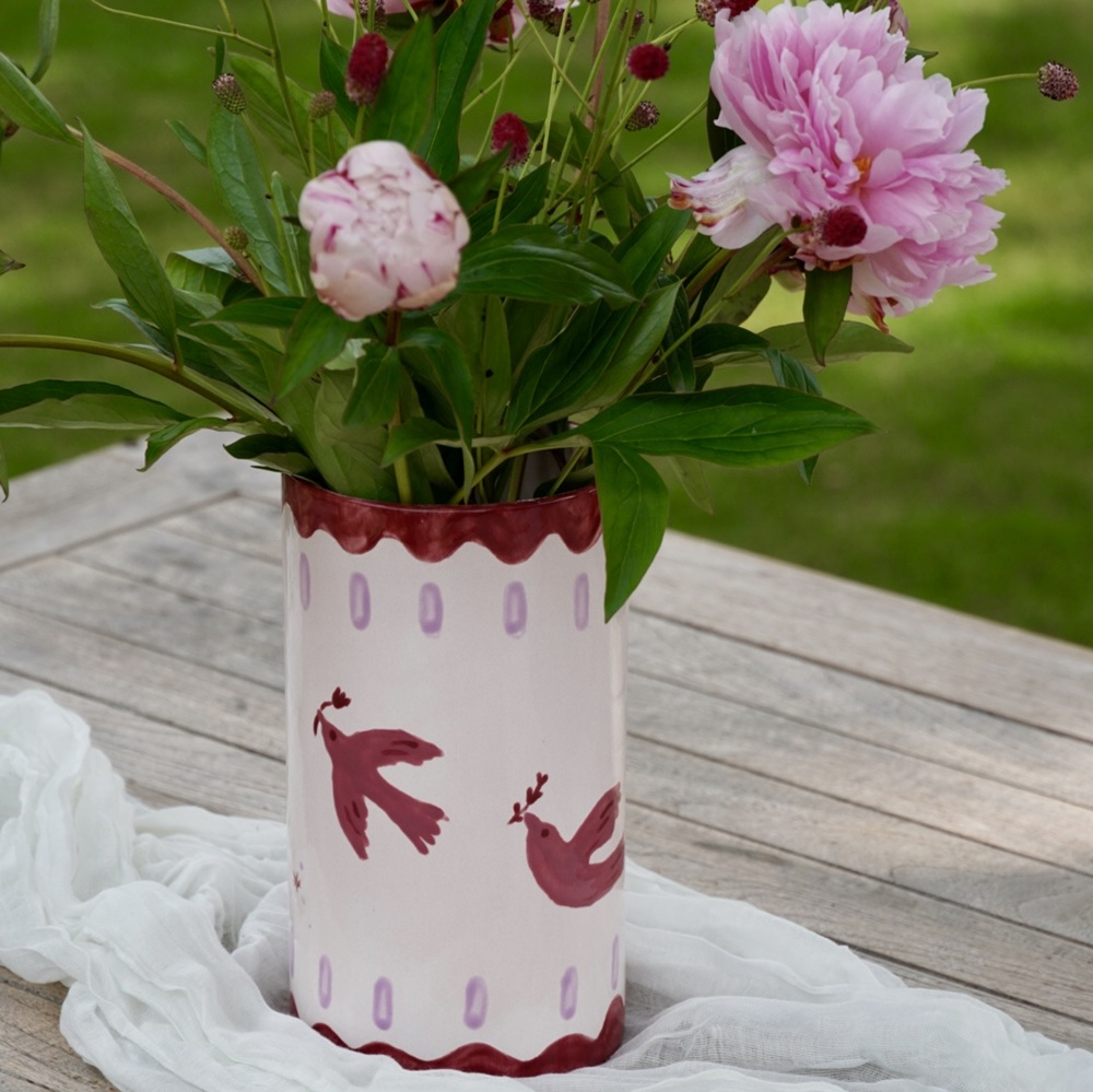 - Na afloop van de workshop laten we de producten een tijdje drogen waarna Anke ze thuis afbakt in haar keramiekoven. Ongeveer 2 weken na de workshop kun je jouw beschilderde en gebakken vaas of schaal ophalen in de pluktuin. Mocht je het leuk vinden dan kun je natuurlijk aanvullend een mooi veldboeket plukken voor in je vaas!